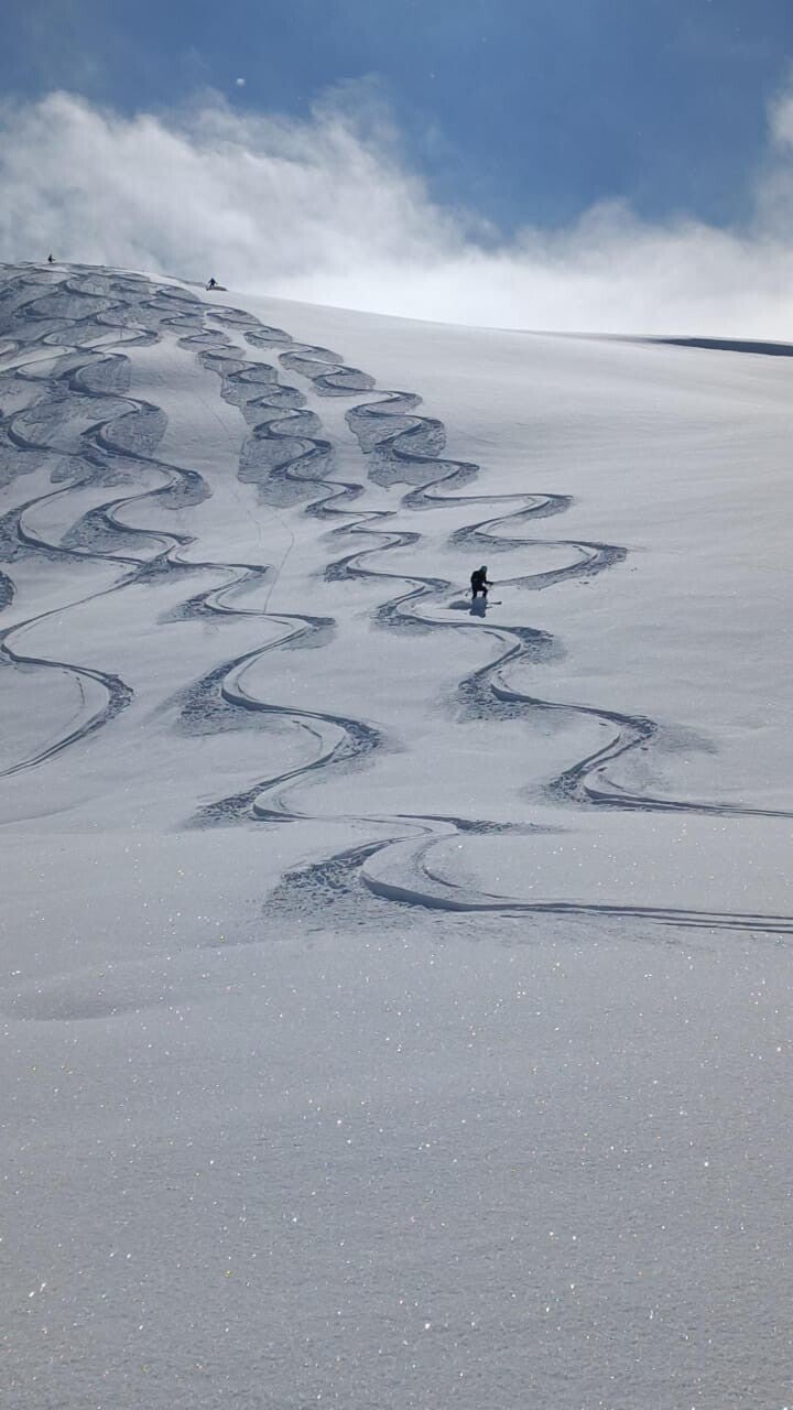 De pistenbully brengt ons hoog de bergen in naar maagdelijke lijnen en diepe poeder. Een ervaring die voelt alsof je de hele berg voor jezelf hebt.